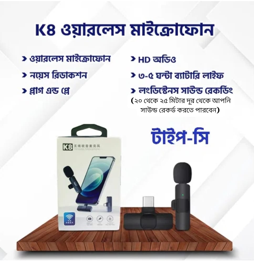 আপনার K8 Wireless Microphone অর্ডার করুন এবং আপনার কন্টেন্টের অডিও কোয়ালিটিকে এক নতুন উচ্চতায় নিয়ে যান।